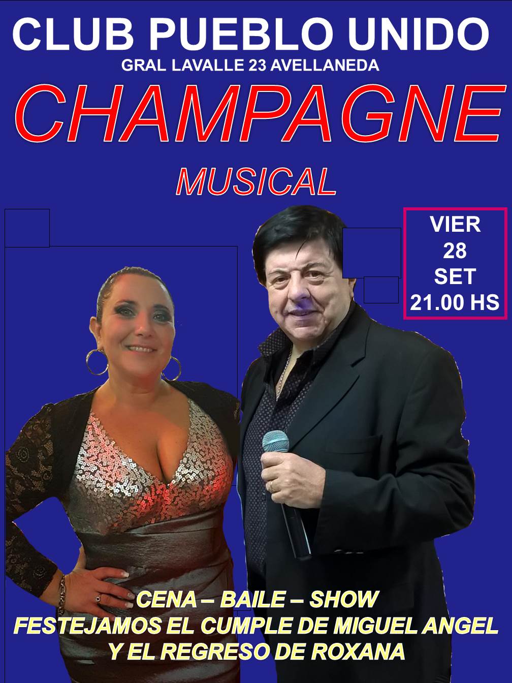 El próximo Viernes 28 de Septiembre a las 21 hs se presenta en nuestro Club Miguel Angel Calvo "Champagne" Musical con "Cena show bailable".
